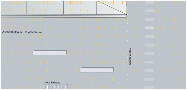 Vorplatz mit Kupferintarsien - Entree und Verteiler