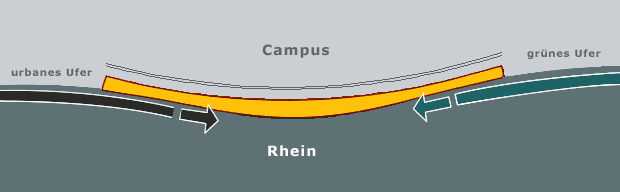 - Entlang des Ufers erhält der Strom einen Uferstreifen zu seiner Verfügung.